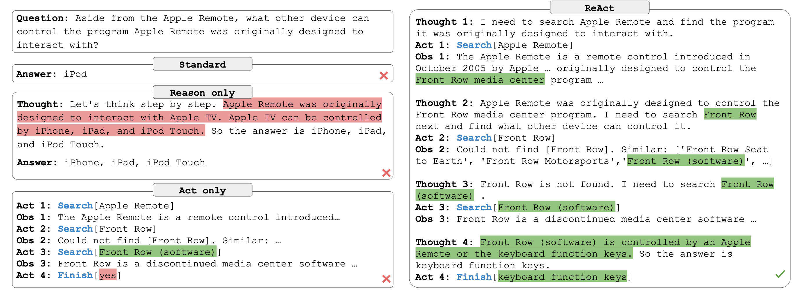 在基础提示技术章节中我们也有提到 ReAct,实际上 ReAct 的思想在 Agent 领域得到了最大的发挥,其思想也在很大程度上影响了后面出现的一些框架。ReAct 也已经在生产环境得到了验证,是一个 Agent Loop 的通解。